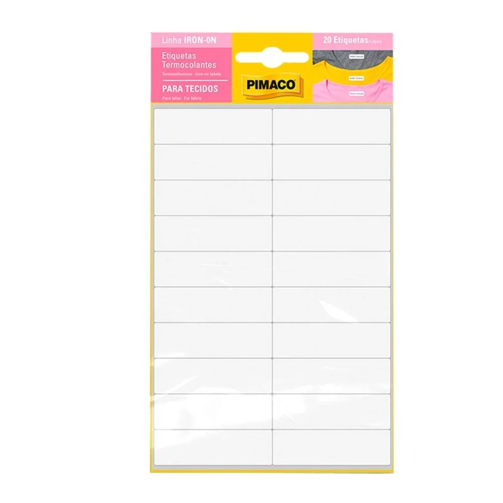Práticas e funcionais, as etiquetas termocolantes da Pimaco oferecem fixação segura em diversos tecidos, facilitando a organização de roupas e acessórios.