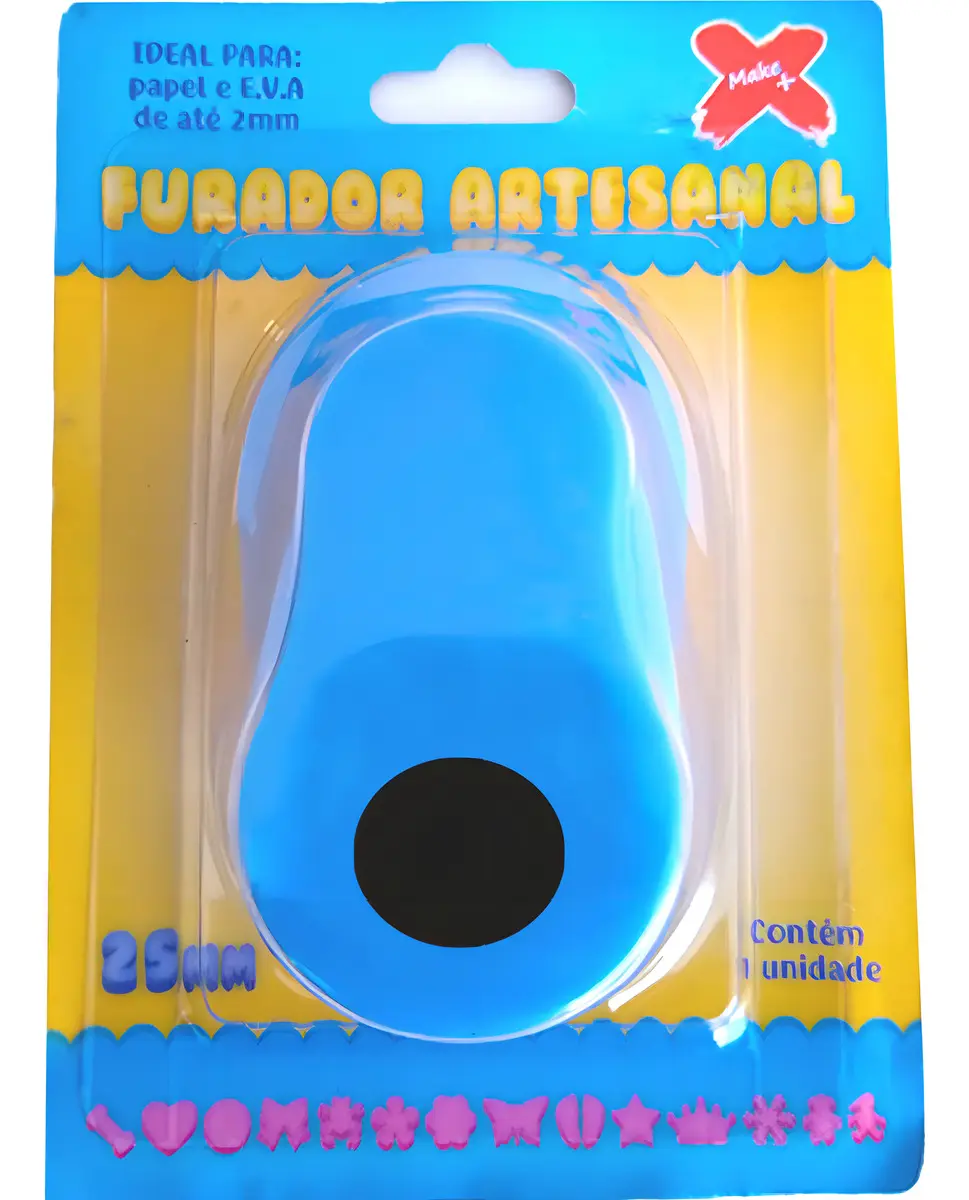 Prático e preciso, esse furador Make+ é ideal para trabalhos manuais com papel e EVA.