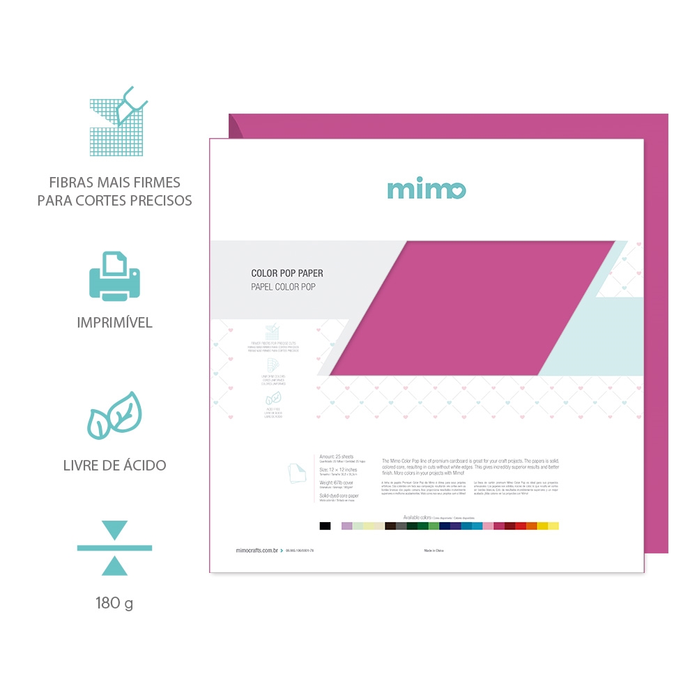-Papel colorido é Color Pop Mimo, pois todo o processo de fabricação desta linha de papéis Mimo Crafts segue rigoroso controle de qualidade. Então, isso garante que lotes diferentes não possuam variação de cores. Isto é, você pode refazer um projeto ou repor parte dele com folhas de pacotes diferentes sem se preocupar com diferenças nos tons das cores dos dois lotes.