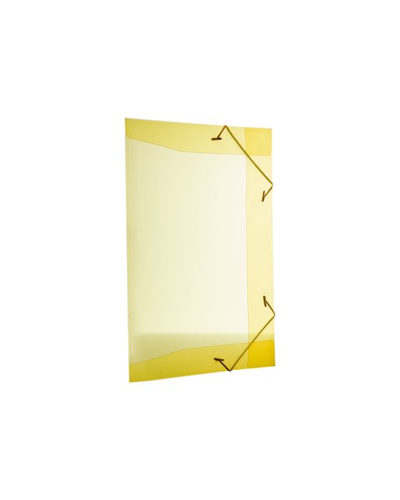-Pasta em polipropileno com abas para fixar os documentos dentro da pasta e elástico para fechar.